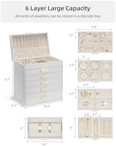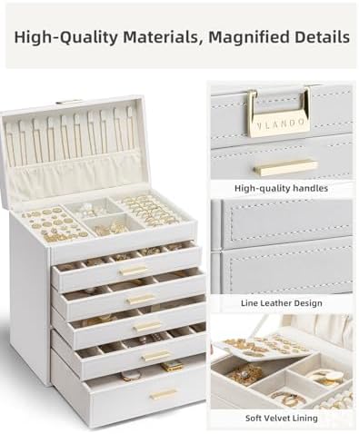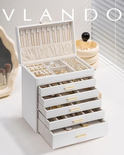 Vlando 大容量 ジュエリーボックス 6段式 引出し 小物入れ ピアス ネックレス 指輪 イヤリング 腕時計 収納 ケース (ホワイト)