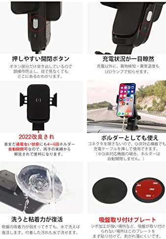 🥇【ワイヤレス充電器の進級モデルが新登場】✅内蔵充電式バッテリーなので、蓄電機能が搭載されています。本製品をお使用する時にエンジンが切れっても4〜6回自動開閉の操作可能です。✅多重安全保護機能の搭載。ショート防止、過熱防止、過電流、過電圧などの保護が全面的に含まれた保護装置で、安全と速い充電可能です。✅最新改良された真空ゲル吸盤 (耐荷重20KG、従来型の10倍以上)は2-Stepロッキング設計により、真空を作って隙間なく粘着し安定性と利便性がさらにアップしました。付属の超粘着性のあるダッシュボードシートで、多少凹凸のあるところにも問題なく吸盤を装着できます。また、吸盤が汚れて吸着力が弱くなったら、ぬるま湯で洗い乾かせば吸着力は何回でも復活し繰り返し使用可能です。 🥇【Qi規格に対応、最大15Wを供給できる】急速ワイヤレス充電機能と72%の高い変換率により従来に比べ2倍の早さで充電が可能です。ワイヤレス充電はこれひとつで:最新のiPhoneやサムスン製スマートフォン主要モデルを含む、ワイヤレス充電に対応する機器と互換性があります。スマホの有無を自動で判断、スマートフォンセット時はエンジンの入切でうっかり開かない親切設計できました。 🥇【角度自由調整、360度回転でき】360度回転できるボールジョイントを採用し、横でも縦でもスマホを自由に操作できますが、視線を妨げないで、安全に運転できます!✅ スマホを充電しながら車載ホルダーとしても使えるため、Googleマップ等の地図アプリをナビとして使用する際はバッテリーの残量を気にせず快適にドライブ出来ます。✅また、ケースを付けたスマホは厚さが10mm以下、横幅が9.5cm以下なら、順調に充電できます。 🥇【自動開閉、安定感抜群】✅誤操作防止 この車載ホルダーはタッチ誘導技術を採用して、ワンタッチボタンーが車載ホルダーの上部に置いてあり、従来品により、もっと便利になり、指でホルダー側部の金属部に押すと、キャッチ部が自動的に開くので、運転中でも片手で簡単にスマホを取り出せます。✅また、赤外線センサータイプや重力センサータイプにありがちだった、勝手に開いたりしっかりホールドできないといった問題をクリアしています。✅車載ホルダーの中央部分は上質なシリコン製クッションをしているので、スマホを傷つけないと同時に、摩擦力を高めることができるのでスマホが落ちるような心配はありません。安定で持続可能のスマホ ワイヤレス充電を確保できます。 🥇【エアコン吹き出し口用】エアコン吹き出し口に取り付けるクリップ式なので、エアコン送風口部分にクリップで挟むだけ、女性でも簡単に設置が可能です。さらに、横でも経てでも角度に限らず調節可能で、運転中に視線妨害になりません。✅上質なシリコン製クッションを内蔵しているので、スマホホルダーはどんな不良な道路に走ってもスマホが落ちるような心配はありませんし、安定に装着できる上にエアコン吹き出し口への傷が付きません。※ご注意📢:さまざまな形のエアコン吹き出し口に対応しておりますが、ご購入前に車のエアコン吹き出し口のタイプを必ずご確認ください。⚠️クリップを固定する時に、無理に合わないところに差し込まないでください。厚さ3mm以下のところに設置することをおすすめします。 💁‍♂️【安心アフターサービス】ご購入後12ヶ月間メーカー保証が付いております。お客様都合での返品・返金も可能です。ご質問や・ご意見などが御座いましたら、Amazonの購入履歴より弊社までお気軽にお問い合わせください。当店利用規約にそって、大至急対応させて頂きます。 - 94位家電&カメラ ( ) - 1位