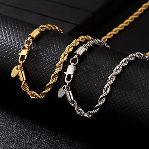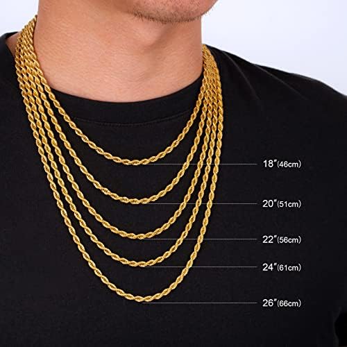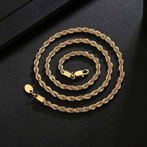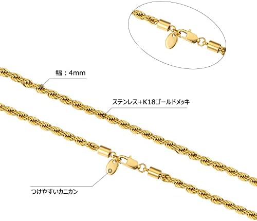 KRKC&CO フレンチロープチェーン 幅2.5/4/6mm メンズ チェーンネックレス ステンレス 金メッキ ネックレスチェーンのみ ハワイアンジュエリー シンプル 男女兼用 アクセサリー 46/51/61cm