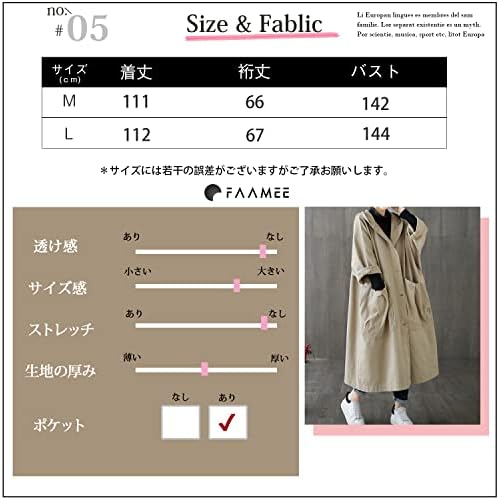 ロング丈のノーカラーのオーバーサイズコート✨着るだけでこなれ感の出るリラックスおしゃれコートです😎🎶身幅やアームホールにゆとりを持たせ、中にはパーカーやスウェットが合わせやすく秋冬に最適◎カジュアルで可愛いくて、1枚でおしゃれに着こなせます。 ラインシルエットが着痩せ効果を発揮してくれるので、気になる体型カバーもしっかり叶えます◎さらにフード付きでスポーティーな雰囲気を演出してくれ、小顔効果も◎ カジュアルスタイルでデイリー使いにぴったり。 ベーシックなデザインなのでアイテムもシーンも選ばず着られて、とっても便利◎大人のカジュアルコーデに合わせやすく、こなれた着こなしができるので、お出かけの時に最適!見た目には大人の女性に相応しいきちんとした印象を◎細部のデザインにこだわった高級感のあるロングコート。服の両サイドには大き目の可愛いポケットがあり、スマートフォンや名刺入れなどの小物が入れれて便利◎両サイドには、嬉しいポケット付きで手ぶらスタイル、ワンマイルコーデが叶う機能面もしっかり考えられたデザインで、大活躍のアイテム◎ 普段使いはもちろん、通学やデート、女子会やママ友とのランチ、お友達とのカフェ巡り、お花見や紅葉巡り、公園やピクニック、BBQや山登り、お散歩や近所へのお買い物、リラックスウエアなどどんなシーンでも着ていただけます。 軽くて暖かいので、妊婦さんにも優しいマタニティーウェアとしても◎ カジュアルアイテムでいろんなあなたらしいコーディネイトを楽しんで。 トレンド感満載の女性らしいシルエットをメイクするワンピースは秋、冬、春とロングシーズン大活躍してくれます◎季節に合わせた小物やアクセサリーとのコーディネートを楽しむのもいいですね。落ち着いたデザインなので、10代、20代、30代、40代、50代、60代と幅広い年齢の方に着て頂けます。幅広いシーンで活躍すること間違いなしのアイテムは、 プレゼントやギフトにもオススメ。コーデに困ったときの強い味方となる優秀な1枚に◎光の当たり方で色見のは画像と異なる印象を受けることは、予めご了承くださいませ。 ※ラングスリーブデザインになります 【 M 】着丈111 裄丈66 バスト142 【 L 】着丈112 裄丈67 バスト144 平置き測定(cm)となりますので、多少の誤差がございます。 また、モニター環境により、実物の色合と若干違う場合がございます。ご了承ください。 - 256,903位ファッション ( ) - 540位
