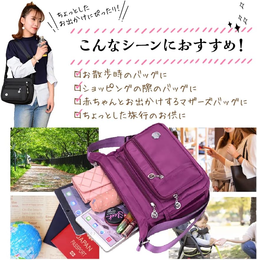 [InZaccaZ] ショルダーバッグ レディース 軽い 小さめ ミニショルダーバッグ ショルダーポーチ 斜めがけ ナイロン ママ バッグ