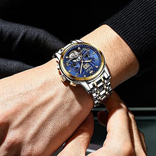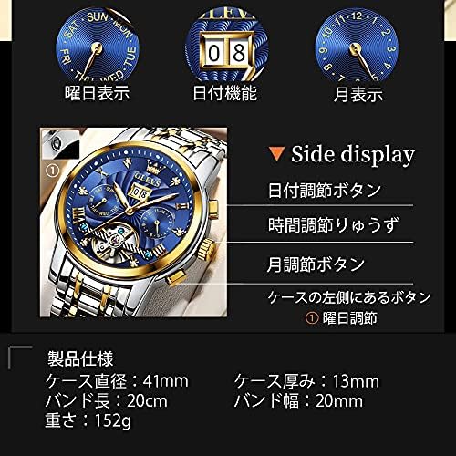 OLEVS 腕時計 メンズ おしゃれ 自動巻き 防水 日付 夜光 ビジネス スケルトン うで時計 人気 ブランド 青 ブルー