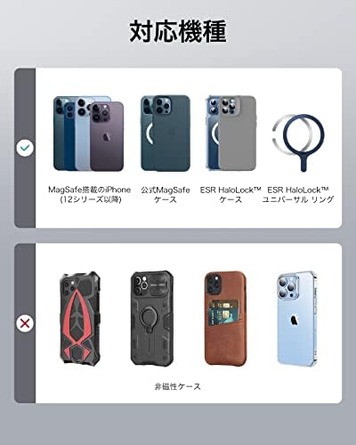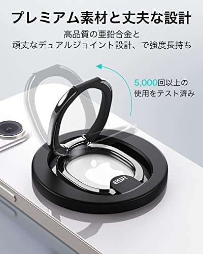 ESR スマホリング マグネット Magsafe リング スマホ落下防止 HaloLock マグセーフ 対応 スマホリングホルダー 指リング バンカーリング 磁石 スマホグリップ 角度調節可能 スマホスタンド 折り畳み iPhone 15/14/13/12シリーズ専用 ブラック
