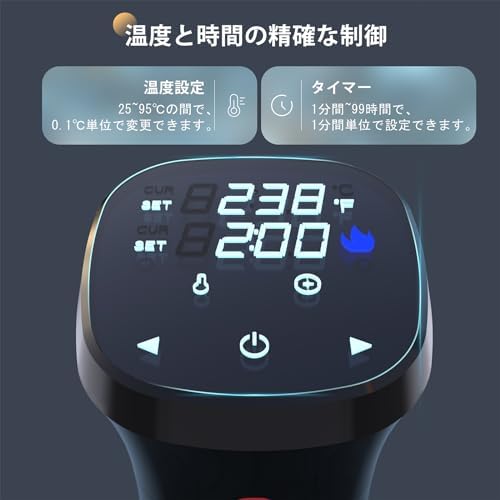 低温調理器 1100Wハイパワー 低温調理器具 24時間 予約機能 真空調理器 スロークッカー レシピ付き IPX7防水 タッチパネル クリップ式 低温調理機 低音調理器 タイマー 温度設定 五重安心保護 日本語取扱説明書