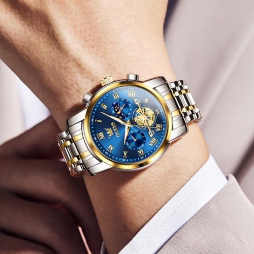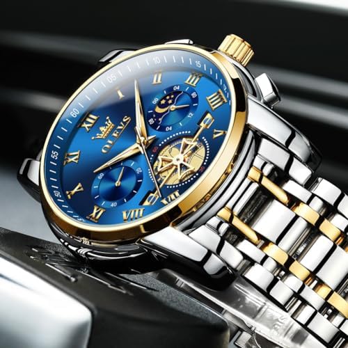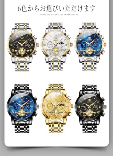 OLEVS 腕時計 メンズ おしゃれ クロノグラフ 時計 メンズ ビジネス 人気 ブランド 大きめ 見やすい アナログ 防水 クォーツ うで時計 (ブルー)