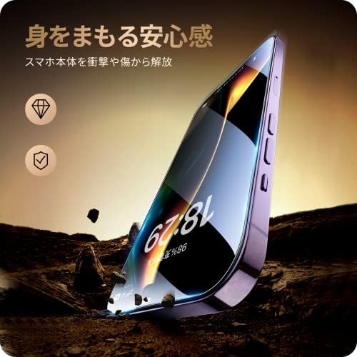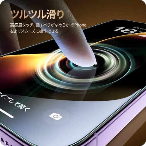 【対応機種】:iPhone 14 Pro 用(iPhone 14は対応できません) 【高透過率】高い透過率のため、iPhone14Proの液晶画面を守りながらスクリーン本来の美しい画質を損なわず、お楽しみいただけます。画面上の操作も違和感なくスムーズに行えます。 【9H硬度】9H硬度ガラスを採用し、ハードコーティング技術により外部からの衝撃を吸収し、iPhone14 Proの画面へのダメージを可能な限り抑えます。飛散防止加工により万一割れてもガラス破片が飛び散りにくいです。 【ケースと干渉せず】iPhone14プロ本体の縁まで適度なスペースを残すデザインとなっており、フィルムの剥がれや浮き上がりを防止し、スマホケースと干渉せずに快適に使えます。 【貼付簡単】専用の貼り付けガイド枠が同梱されています。ガイド枠を利用することで、スマホ本体とフィルムがズレることなく、だれでも簡単にフィルムを貼ることが可能です。また、フィルム自体のシリコン自己吸着層により、位置を合わせて上から軽く置くだけで気泡が入ることなく簡単に装着できます。★ガイド枠下部が特殊な設計となっており、万が一貼付けに失敗しても、ガイド枠を外すことなくフィルムの貼り直しが可能で、ガイド枠の素材はABS(合成樹脂)ですので、スマホに傷をつけない素材でございます。ご安心してお使いください。