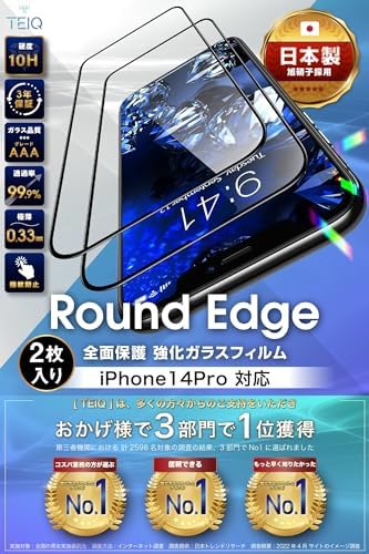TEIQ ガラスフィルム iPhone14Pro 硬度10H 日本製旭硝子 全面保護 強化ガラス フィルム ガイド枠付き 2枚セット iPhone 14 Pro 対応 GF-13-D