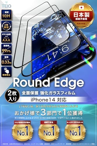 TEIQ ガラスフィルム iPhone14 硬度10H 日本製旭硝子 全面保護 強化ガラス フィルム ガイド枠付き 2枚セット iPhone 14 対応 GF-12-D