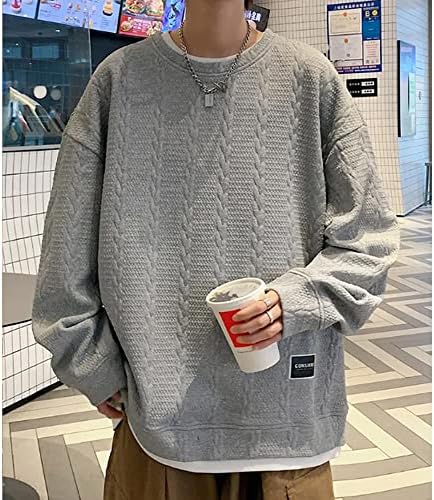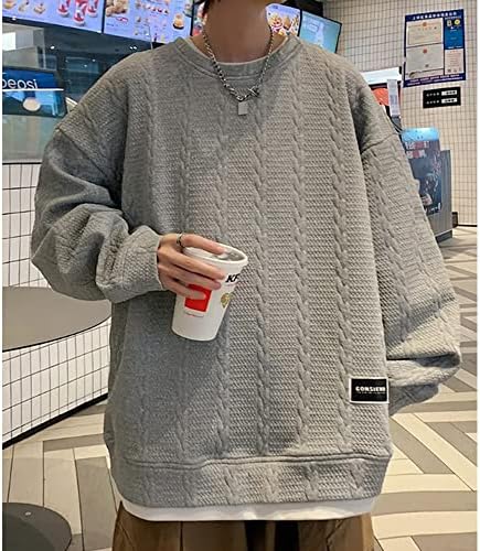 Aaronlive Men's Sweatshirt, Long Sleeve, Round Collar, T-shirt, Large Size, Popular, Pullover, Casual, Comfortable, Loose, Spring, Autumn, Winter, Clothes, Men's Trainer
