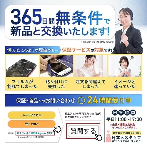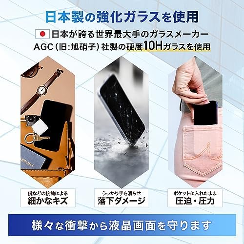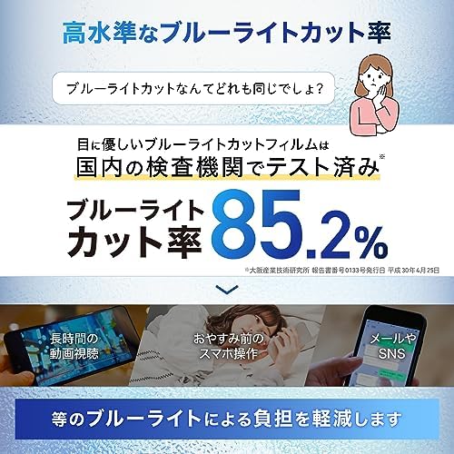 対応機種 … iPhone14 【 目に優しい ブルーライトカット 】 日本製強化ガラス(旭硝子)を使用した硬度10Hのガラスフィルムにブルーライトカット機能を追加し、UV紫外線(200-380nm)を98%カット。ブルーライト危険域(特に紫外線に一番近い380-410nm)は85.2%としっかりカット。ブルーライト域全体(380-500nm)でも26.4%カットします。 【 クリアで美しい 透過率99% 】 ブルーライトカットフィルムにありがちな黄色や紫色のようなカラーフィルムではありません。画面本来の美しい発色を損なわない、クリアなガラスフィルムです。さらにラウンドエッジ加工で見た目も美しく。 【 液晶割れを徹底ガード 】 硬度10Hで液晶割れを徹底ガード。硬度10Hなら落下はもちろん、鍵などと一緒にバッグに入れても傷がつきません。万が一の破損時も、飛散防止加工によって破片が飛び散ることがなく安全です。 【 365日間 国内メーカー保証 日本人スタッフが対応します 】 より多くのお客様に安心して極上フィルムをご愛用いただけるよう、1年の保証制度をご用意いたしました。お手元に届いた商品が「イメージしていた物と違う」「間違えて注文してしまった」「フィルムが割れてしまった」「貼り付けに失敗した」など、どんな理由でも新品と交換させていただきます。お困りの場合は当店までお気軽にご連絡ください。【※パッケージデザイン等は予告無く変更する場合がございます】