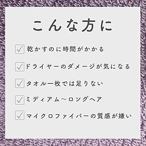 超吸水&低摩擦でドライ時間を大幅短縮 髪専用のタオルです。 髪専用ならでは表面(なめらか面)と裏面(パイル面)仕様。 お風呂上がりには吸水力の高いパイル面で水気を吸収してください。ある程度、吸収しきったらタオルを裏返してなめらかな面で更に水気を拭きとってください。 フェイスタオルよりも大きいのでターバンがやりやすく給水量もたっぷり カラーバリエーションは全7色。豊富なカラーでお好きなお色をお選びいただけます