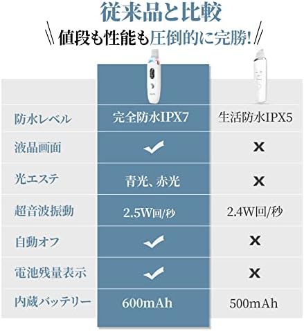 【2024新登場】超音波ピーリング・イオンクレンジング・浸透モード・EMS・光エステなどの機能の組み合せで、2.5W回/秒の超音波振動で水をミスト状にして、皮膚深層に残した汚れを取り除き、エステサロン級の美肌ケアを手軽に自宅で実現できます。手順:洗顔→水でION+→美容液やパックをしてION-→クリームでEMS→ 乳液で仕上げ。お肌の状態によって、一つだけのモード使っても効果があります。 【超音波】超音波美顔器の超音波イオンクレンジング(ION+)は肌深層の汚れをイオンと超音波振動の力で吸着します。メイクの残り汚れを取り除き、美容液の有効成分がより浸透しやすいお肌に整えます。マイナスイオン( ION-)の力と超音波振動で美容液とシートマスクの有効成分をお肌の奥深くまでに浸透させます。シートマスクをつけて、その上から美容成分の浸透モードが使用できます。EMSリフトアップを組み合わせ、もっとツルツルになれます。 【IPX7完全防水・液晶画面】ウォーターピーリングはIPX7完全防水だから、お風呂でも使えます。ワンボタンで操作簡単、一目でわかる液晶画面搭載、画面の表示により、モードや残電力量・充電状況などが確認できます。 【自動電源オフ・充電スタンド】自動電源オフ、各モード5分経つと自動停止になり、「ピッピッ」音でお知らせします。スタンバイ時にその時の操作モードを記録しました。モードを切り替えると時間が自動的に再計算されます。USB Type C充電スタンドは両面が充電可能になります。使わない場合はスタンドを置いて、収納便利です。 【ユニセックス・アフターサービス】本美顔器は男女兼用デザインで、ご両親、彼女、彼氏、友達など、大切な人への贈り物にも適用になります。誕生日プレゼント、祝日のプレゼントとしても最適です。ご購入の日から一年間の商品保証があり、万が一商品は初期不良や故障などがありましたら、また使用中に質問がある場合は、いつでもお気軽にお問い合わせください。ご満足できるまで力を尽くしています。平日には24時間以内に対応できますので、ご安心ください。