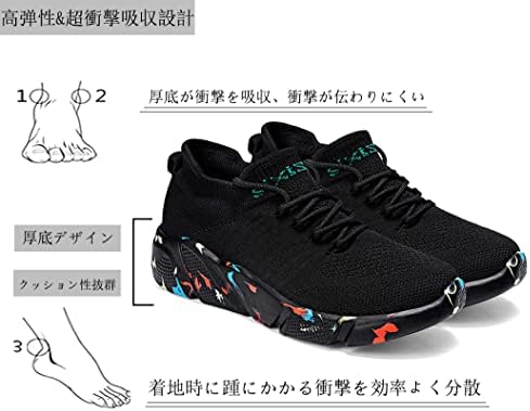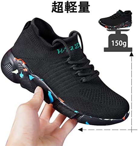 【着脱簡単/超軽量】一体型の履き口が、伸縮性にも優れているので、着脱の便がよい。靴ひもは緩さを調節できて、とても良い貼り合わせができます、フィット感良し。3D縫製技術で一体型のアッパーが、非常に軽い素材で作られているので、靴全体は軽くて、緩衝の効果は良いです。運動靴は履き心地がいい 【厚底/クッション性/疲れにくい】スポーツシューズのソール部分はある程度厚みもあって、足底には優しいですが。スニーカーはクッション性に優れています、踵に衝撃吸収技術を設計し、アウトソールは 衝撃を吸収、着地時に踵にかかる衝撃を効率よく分散。さらにしなやかなソールは足の動きにフィ ット して、長時間のウォーキングや立ち仕事での疲労を大幅に軽減します。 【通気】スニーカーのアッパーはポリエステルメッシュ生地を採用し、メッシュより一層丈夫で、通気性も優れて、通気性と吸汗性を兼ね備えます、足の健康にもサポートします。さわやかな履き心地を提供してくれます。あなたに一日中を着させて同じく疲れて感じることができません。 【滑り止め&耐久性】ソールは凸凹で、滑るのを防いでくれます、アウトソールのラバーを増量し、足にやさしい履き心地を提供します、トラクションと耐久性を強化。 【男女兼用/多用途】適用対象:メンズ、レディース、中学生、高校生、大人、男性、女性、高齢者、アクティブシニア世代、シニア、ジュニア。運動、ウォーキング、ランニング、ジョギング、トレーニング、スポーツ、ジムでトレーニング、普段履き、通学、通勤、室内、アウトドア活動などに利用できます。おしゃれなデザインでさまざまなファッション衣服に合わせやすい、大人気の全方位のスニーカーです。 - 135位ファッション ( ) - 3位
