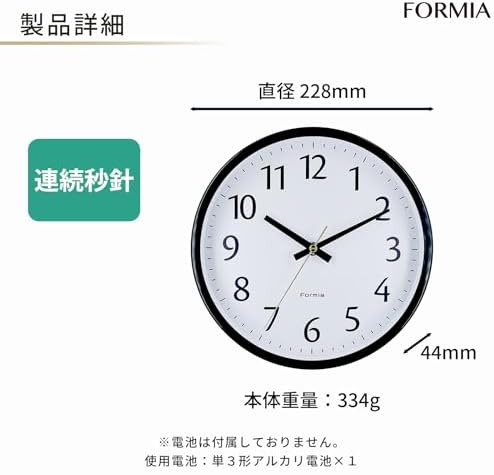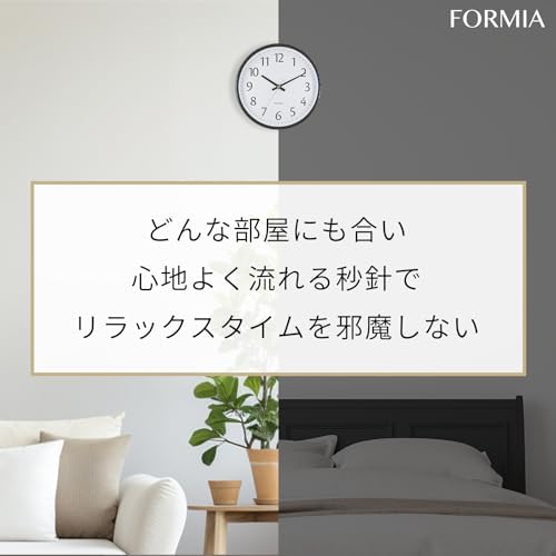 Formia(フォルミア) 壁掛け時計 見やすい シンプル 静音 連続秒針 アナログ 子供 保土ヶ谷電子販売 ブラック HWC-012W-BK