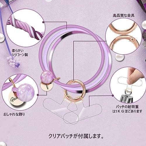 UKON スマホストラップ スマホシリコンリング おしゃれな携帯ストラップ シンプル 落下防止 着脱簡単 全機種対応 三色組み合わせ パッチ2枚付き (紫色)