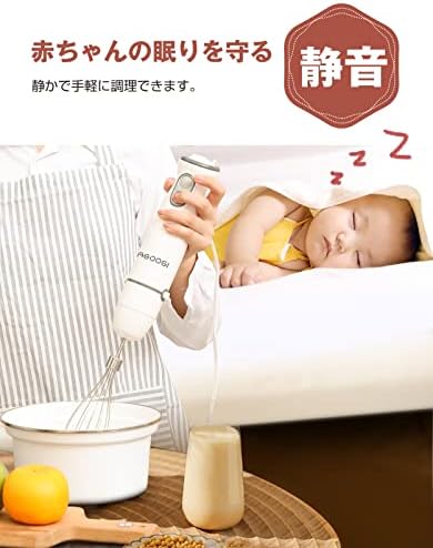【1台6役】「つぶす」、「混ぜる」、「刻む」、「砕く」、「攪拌」、「泡立てる」の6つの調理方法が出来るHAGOOGIマルチスティックブレンダー。女性の手でも持ちやすいスリム&軽量設計なので片手で簡単調理料理の下ごしらえからポタージュ、ドレッシング、離乳食など様々な料理に役立ちます。 【800W銅モーター】最大800wのパワフルモーターであっという間に出来上がり、時間の短縮になるのでお忙しい毎日を送る方にも楽々!本製品には温度保護機能が付いています。超負荷の場合は保護機能が動いて、運転が自動に止まります。1年間のメーカー保証付き、PSE安全認証済なので、使用には安全安心です。電源 : AC100V 50/60Hz 重量 :650g 。 【2重モード&7段変速】本体は2モード(低速モード/高速モード)を搭載します。食材や料理に合わせて、やわらかい果物には低速モード、肉のきざみや果物等の固い果物のつぶしは高速モードです。 【使いやすい&省スペースで収納】ポタージュやパスタソースなどを作る際も、鍋やボウルの中で直接調理できます。洗うパーツが少なく、お手入れが簡単なのも嬉しいポイントです。もし商品のご使用中何か問題やご不明な点がございましたら、こちらは迅速に対応できますので、どうぞ遠慮なく弊社のアフターサービスにご連絡お願い申し上げます。 連絡先:[email protected]。 【飛び散り防止設計&低騒音】ブレンダーの回転刃カバーには飛び散りを防止する独自の設計を採用しています。キッチンや衣服を汚す心配が少ないので、いつでもどこでも安心してお使いいただけます。