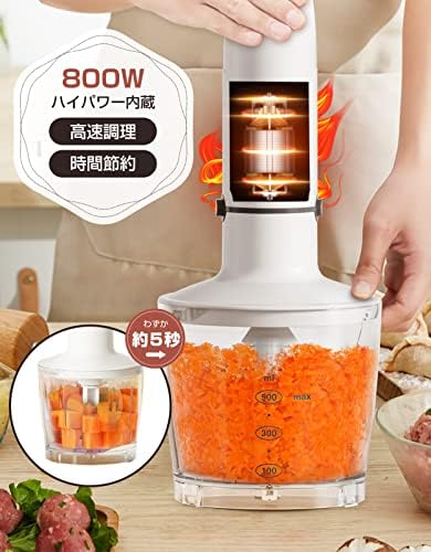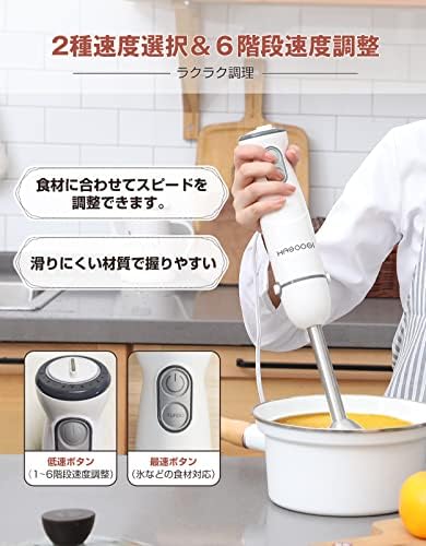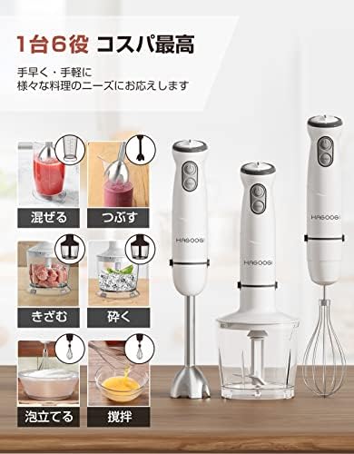 HAGOOGI (ハゴオギ) ハンドブレンダー 離乳食 1台6役 800w 高速 ブレンダー チョッパー ホイッパー ひき肉 果物 野菜 スムージー 氷も砕ける おしゃれ 調理器具 ミキサー 人気 ランキング ハンドミキサー フードプロセッサー HB-2051-ホワイト