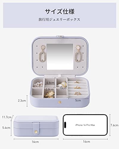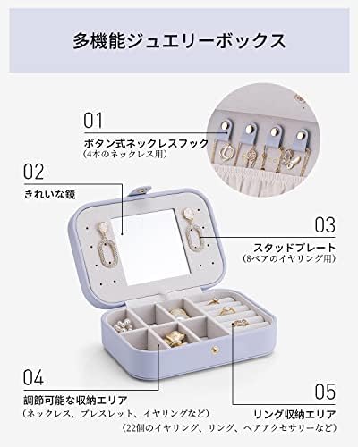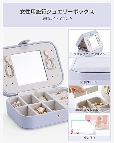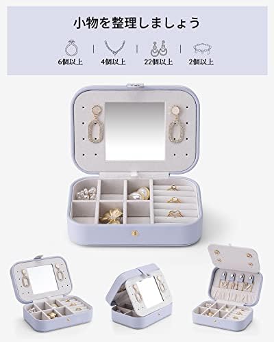 Vlando ジュエリーボックス 携帯用 コンパクト アクセサリーケース 持ち運び 収納 鏡付き 可愛い 旅行用 ジュエリーケース ミニ ピアス リング ネックレス ラベンダー