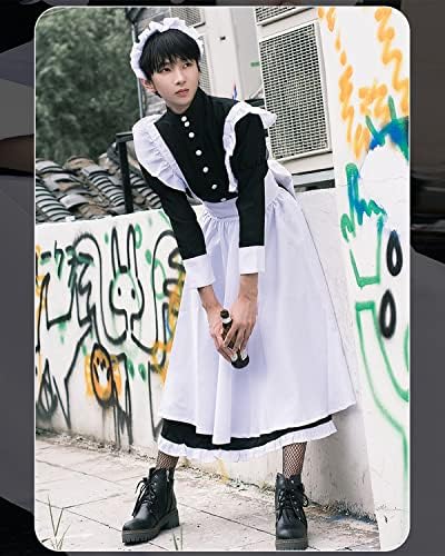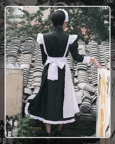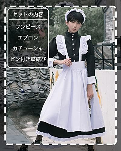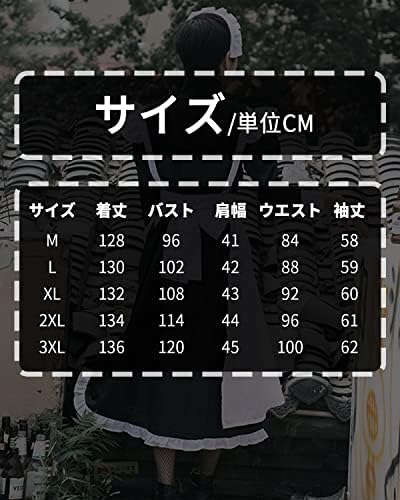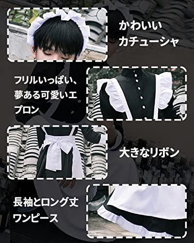 [JIURUN] メイド服 コスプレ 長袖 大きいサイズ 英国風 ロング丈 エプロン カチューシャ ワンピース 女装 メイド喫茶 コスチューム ハロウィン メンズ レディース 変装 仮装 プレゼント ゆめかわいい 服