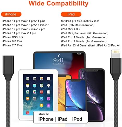 DESOFICON iPhone用充電器延長コード [Apple MFi認証] ナイロン編組ライトニングエクステンダードックケーブル オス-メスアダプター 3.3フィート iPhone 14 Pro 13 Pro 12 11 X XR 8 7 6パスビデオ/データ/オーディオ用