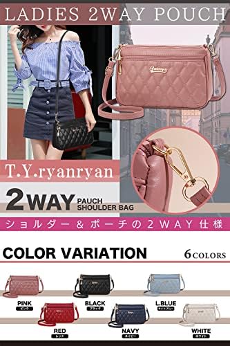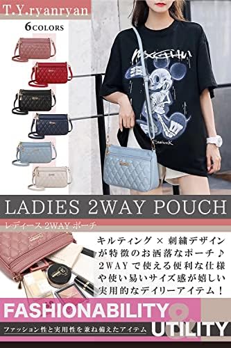 [T.Y.ryanryan] ポーチ レディース ショルダー バッグ 肩掛け 斜めがけ ハート 刺繍 PU ライトブルー