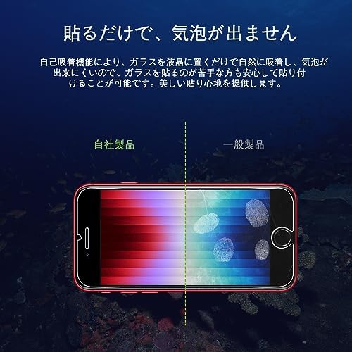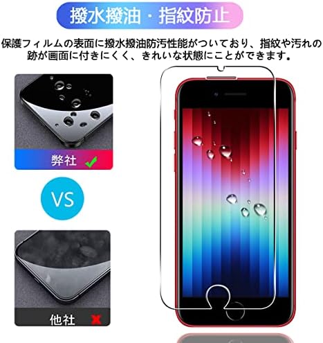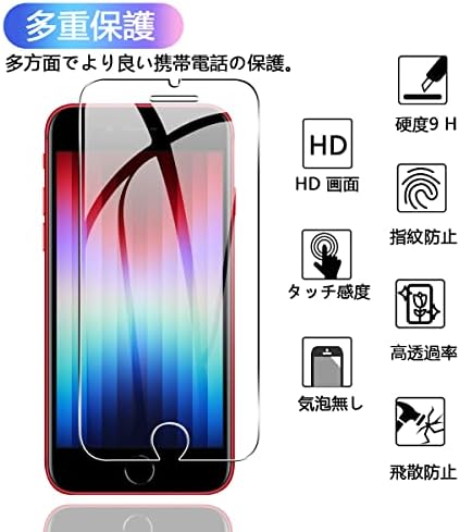 ✔【対応機種 】 iPhone SE3 / SE2 / 8 /7 ガラスフィルム,専用液晶画面保護ガラスフィルム。フィルムのシリコン自己吸着層により、スチールフィルムを携帯電話に合わせて軽く置くだけで、気泡が入らないように簡単に取り付けられます。 ✔【高透過率】 高品質の日本製旭硝子素材を採用することで透過性がに達しています。市販のガラスフィルムより透明度が高くて、液晶画面の本来の美しさを損なわないません。高精細度でいつでも写真やビデオを楽しむことができます。 ✔【高品質の材料】:業界最高レベルの9H硬度を有し、4.5時間以上の高温クエンチ処理を受け、スクリーンプロテクターは、通常のガラスよりも5倍高い125MPaの圧縮強度を持っています。 シリコンコーティングを内蔵して衝撃を緩和します、画面へのダメージを最小限に抑えます。特殊な設計により、万が一ガラスが破損した場合、スクリーンをきちんと保護しながら怪我を防ぎます。 ✔【指紋防止、防油、防水】 ガラスフィルムの表面にはナノコーティングが施されており、特殊な疎油処理されているため、画面感度に影響しなくて、簡単にタッチすることができ、指触りが抜群です。汗や指紋がついているときは、軽く拭くだけで新しい状態に回復できます。 ✔【2枚セット·品質保証】最高なカスタマーサービスを目指して、お届け前に検査スタッフが1枚づつ品質チェックしておりますが、万が一製品にご満足いただけない場合は、弊社よりに全額返金·交換対策がございますので、ご遠慮なくご連絡ください。
