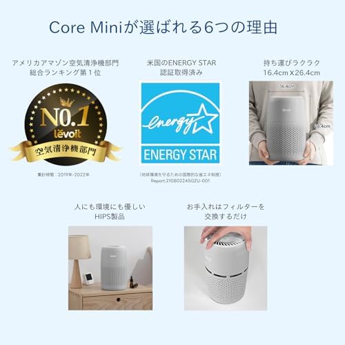 節電対策Levoit (レボイト) 空気清浄機 12畳 小型 花粉 卓上 軽量 カビ取り 脱臭 集じん ペット hepa フィルター 静音 手軽 スタイリッシュ アロマ対応 車 Core Mini グレー