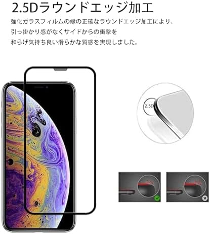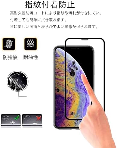 【対応機種】iPhoneX/iPhoneXS/iPhone11pro 用 全面保護 ガラスフィルム。【注意】この電話の画面の端は湾曲しているため、保護フィルムのサイズが丁度良い場合、しっかりと貼り付けられず、白いエッジやシェルとの干渉などの問題があるため、保護フィルムは画面よりも小さいです。 【9H硬度・日本製ガラス素材】日本旭硝子製ガラス素材採用 最上級強度のガラスを使用し表面硬度は9H。万が一スマホを落としてガラスが割れても、 ガラス破片が飛び散らないような安心設計。 飛散防止 、ガラス破片から守ります。 【申し分ない透明感】:画質を徹底して追求するため、最高級のガラスを選択し、透過率を実現しました。透き通ったガラスフィルムに多層フィルタフィルムを採用し、素晴らしい透明度を確保して、一体感になって、まるで貼っていないみないような感覚で携帯の美しさはそのままにお楽しみいただけます。 【指紋防止、高感度タッチ】ガラスフィルムには撥油コーティングが施されており、指紋や汚れなどに強くなめらかな操作感を実現、付着した汚れなどは簡単に拭きとれます。こちらは高耐久撥油コーティングが施され、つるつるな滑り感を実現!ゲームしても渋くなし! 【気泡防止・貼付け簡単】気泡防止加工が施されているので、気泡が入りにくい。万が一気泡が入ってしまっても時間が経てば徐々に抜けるので 美しい仕上がりに。ガラスを液晶に置くだけで自然に吸着、簡単に気泡が抜いて行くので、誰でも簡単、綺麗に貼ることができます。フィルム貼りことが苦手の方でも簡単に貼る事が可能です。