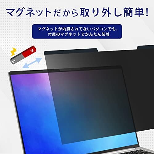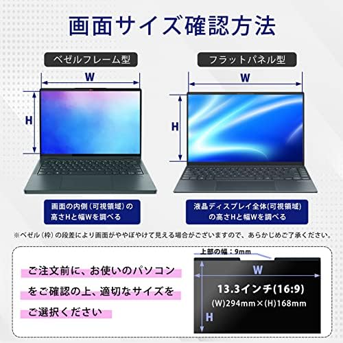 【プライバシー保護】視野角 60度、正面から見れると画面はクリアでも、隣の席からは真っ暗に映る偏光性を有する「覗き見防止フィルター」です。【対応機種】13.3インチ 縦横比16:9 寸法:フィルター部分のみ 294×168mm(縦幅/横幅のばらつき:+/-1mm程度)。上部の黒いマグネット部分は約9mm。画面とベゼルの高低差により画面がややぼやけて見える場合が御座います。 マグネット式:ワンアクションで簡単に着脱できるので必要な時だけお使いいただけます。 また、マグネットシールが同封されていますので、マグネットが内蔵されていないパソコンにも対応します。 リバーシブル :光沢・反射低減の両面タイプで、簡単に付けたり外したりできます。菌や微生物の増殖を抑える抗菌仕様で安心です。 ブルーライト&紫外線カット:ブルライトカット率:60%、ブルーライトを浴びすぎて、ドライアイや眼精疲労、悪化すると頭痛や睡眠障害など「デジタル時差ボケ」になる可能性が高いです。本製品はブルーライトを約60%遮断し、紫外線も99.9%をカットすることによって、長時間のパソコン作業される方を有害光線から目を守ります。 安心作業:移動中やオフィスでの周りからの視線を防いで、安心してパソコン操作ができるのぞき見防止フィルターです。■※非対応機種:レノボ Think Pad Xシリーズ(Think Pad X390, X1 Carbonなど。マグネットが電源機能に影響を与えてしまうため。)