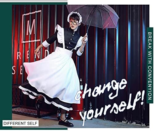 [YUEEI] メイド服 メンズ 男性向け ロングスカート コスプレ ハロウィン 仮装 ワンピース 長袖 可愛い パーティー イベント 撮影 女装 演出服 網タイツ付き 5点セット