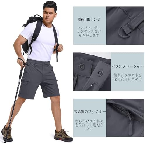 【上質なナイロン素材】高品質な生地を採用し、通気性に優れ、汗をかいてもサラサラで、快適な着用心地が実現します。また、しっかりとした耐久性を備え、長時間の着用が可能です。 【設計】①ウエストの両側にゴムが付き、伸縮性あるので、履き心地抜群です。②ループ:ウエストの所はループが付き、ベルトが使えます。③ポケット:五つのポケット(側にポケット×2、膝上にジッパーポケット×2、後ろにポケット×1)、収納が便利。 【機能】①撥水加工:撥水性ある素材を採用したので、アウトドア環境に雨水に会って蓮の葉式撥水機能は発揮します。②速乾・吸汗性:猛暑な時期に汗を流すことはもちろん、汗を流す時に急速に吸収して拡散します。そして、まもなく乾くなります。③耐久性:優れた耐久性は引き裂きにくくて、丈夫で長持ちできます。アウトドアシーンに不可欠のアイテムです。④ストレッチ性:やや伸縮性がありまして、良い着心地を提供します。 【適合した対象】メンズ 【適合した季節】春、夏、秋 【適合したアイテム】ハイキング、キャンプ、登山、釣り、サイクリング、トレーニング、サーフィン、ハンティング、自転車、サバゲー、旅行、通勤、ルームウェア、バイクなどアウトドアカジュアルシーンにも最適です。室内フィットネスからアウトドアまで対応できます。 【暖かい提示】①素材の特性と測定方法の違いによって、誤差は1-3CMの可能性があります。実際のサイズは実物に準じてください。②画像撮影時の状況や、PC画面上での環境等により、多少色合いが異なって見える場合がございます。③生地を織る際に糸の継ぎ目や多少のほつれ等が生じる場合がございますが、品質上の問題ではございません。ご了承の上お買い求めくださいませ。 - 104,457位ファッション ( ) - 206位