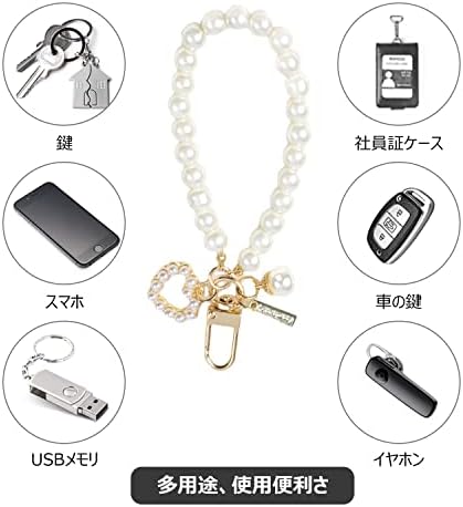 [Turkalla] スマホストラップ パールチェーン強化版・金属製D字バックル携帯ストラップ リストストラップ 腕掛け パール 可愛い iPhoneストラップ SGS認証 10G荷重量 丈夫 耐久性強化版 長さ調整可能 着脱簡単 紛失・忘れ物防止 全機種対応 スリストストラップ1本入り+タグパッチ1枚入り