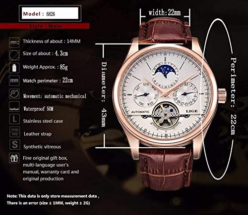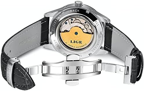 [LIGE] メンズ腕時計 トゥールビヨン 自動巻き 機械式 仕事 ビジネスに最適 プレゼント 高級腕時計 革 レザー ベルト ドレスウォッチ 結婚式 成人式 高精度 デイト カレンダー 防水 (ブラック/シルバー)