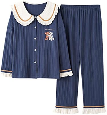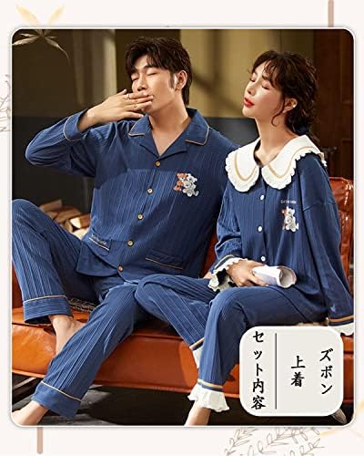 [JIURUN] パジャマ レディース メンズ 綿100% 長袖 ゆったり 前開き 春秋 上下セット 柔らかな肌触り ルームウェア