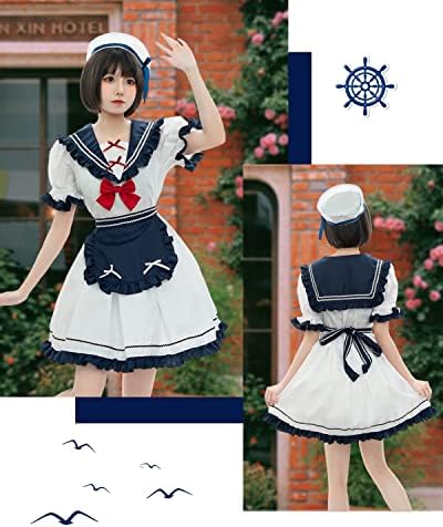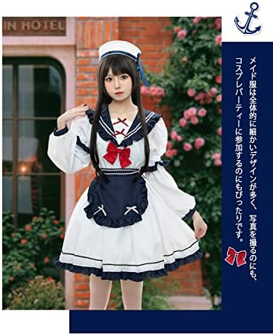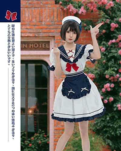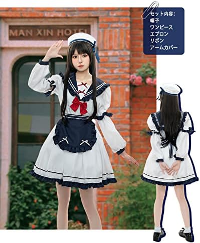[JIURUN] ロリータ メイド服 ワンピース 海軍風 JKプリーツスカートリボンレディース かわいい ロリータ洋服 エプロン アリス風 長袖 半袖