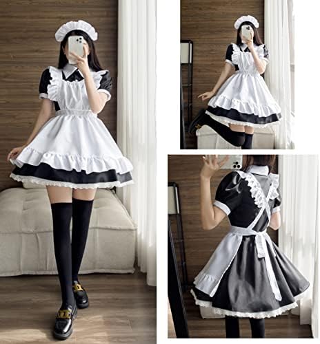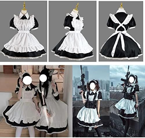 [FULINE] メイド服 コスプレ コンカフェ メイド エプロン 定番 ショート丈 メイドコスチューム 仮装 レディース メンズ セット 一式 こすぷれ イベント パーティー 大人 男女兼用