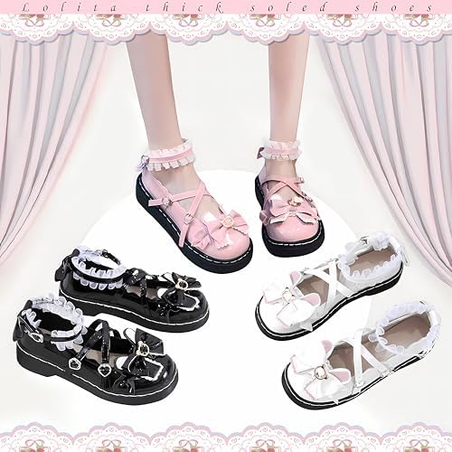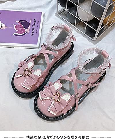 [JIURUN] レディース ロリータ 靴 レディースパンプス 大きいサイズ リボン ゴスロリ 靴 厚底 メイド 靴 リボン フリル パンプス 可愛い おでこ靴 姫系 レースフリル 歩きやすい 疲れにくい 森ガール ガーリー