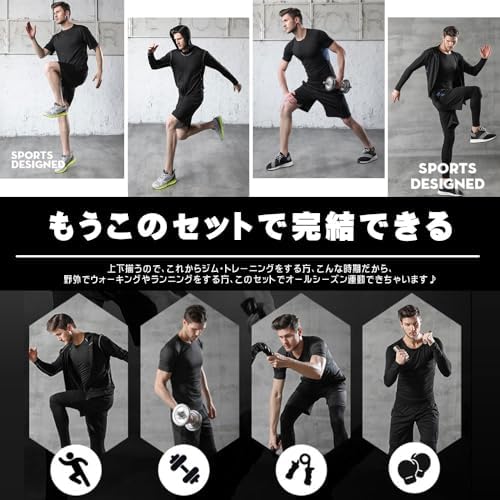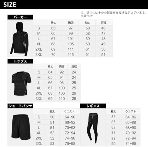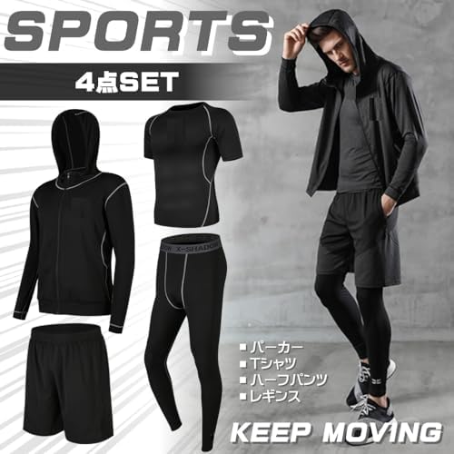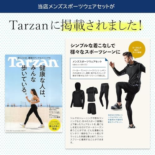 Tarzan published product released on October 5. Eliminates unnecessary logos, making it simple and more stylish. This 4-piece compression wear set is perfect for all occasions, including the gym, training, running, and sports With this one piece, it is suitable for all seasons. Made with highly breathable, quick-drying and stretchy fabric, so it feels smooth and comfortable even during intense sports. The stretchy material has excellent elasticity and the fit of quick-drying material keeps you comfortable Lightweight, fit and outstanding breathability, each one can be worn alone, and can be worn in 4 different ways, so you can wear it in a variety of occasions The stretchy material and quick-drying material can be used for a wide range of indoor sports wear such as running, training, fitness gym, and outdoor sports wear such as walking, and outdoor sports This 4-piece set includes a hoodie, short sleeve t-shirt, half pants, and inner tights, so it is safe for those who work on sports from now on! The price will be higher if you combine the 4 pieces separately, but we can make it affordable with our factory direct set so that you can lower the price A simple and cool look with a black outfit. Sizes: S, M, L, XL, 2XL, 3XL. Fit: The t-shirt is slightly stronger than compression so it is a perfect fit. Inner tights are not compression tights, but are inner tights. You can even get 200% even better with cool sportswear #16,812 in Clothing, Shoes & Jewelry ( ) #100 in