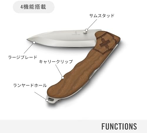 4 Functions: Large blade, thumb stud (removable), lanyard hole, clip (removable) Handle Length: 5.4 inches (136 mm) / Weight: 5.3 oz (150 g) Made in Switzerland, with a Japanese official Japanese warranty certificate: Authentic domestic products sold by Amazon Japan are shipped from Japan. Please note that the shipping source and address may not be covered by a parallel import or non-domestic genuine products sold by overseas sellers Material: stainless steel (blade), walnut (handle) Blade Length: Approx. 3.9 inches (10 cm)