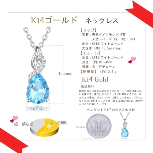 [FANCIME] ダイヤモンド ネックレス レディース K14 ホワイトゴールド 12ヵ月 誕生石 天然石 しずく ペンダント シルバー チェーン 母の日 クリスマス 誕生日 記念日 プレゼント ギフトラッピング付