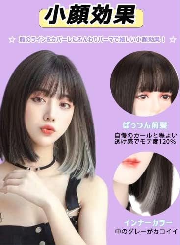 【商品仕様】サイズ:前髪:約12cm、後髪:約33cm、頭周り:53cm-59cm、フリーサイズ:アジャスター付きなので、個々の頭の大きさに合わせて段階調節することができます。セット内容:ウィッグ+専用ネット。カラー:ブラックブラウン&白茶グレー。【ご注意】: 商品写真はできる限り実物の色に近づけるよう加工しておりますが、お客様がご使用するパソコンのモニター設定や部屋の照明により実際の商品と色味が異なる場合があります。予めご了承ください。ヘア製品なので、完全に抜け毛をなくすことはできませんので、ご了承下さいますようお願い申し上げます。 【頭皮素材】: 高品質耐熱ファイバーを使用、人毛のようなナチュラルな手触りです。光を自然に反射し、ウィッグ特有のテカリ感を抑えます。まるで自分の髪のように自然で、通気性が良く涼しく過ごすことができます。 【バラメッシュネット付き】:柔らく伸びるメッシュ生地を採用するので、軽量で通気性があり、調整アジャスターもつき、ぴったりなサイズでご着用いただけます。長時間付けていても頭が痛くなりにくいです! 【着用効果】:可愛さ+小顔効果を超自然に仕上げたボブショートウィッグです。ふんわり軽いシルエットで透け感のある前髪がどこか幼さを感じさ守ってあげたくなる印象を与えます。癒し効果もあるエアリーなスタイルで女の子らしさをアピール♪ 【オススメシーン】シンプル、個性的なスタイル、いつもと違うイメージをチェンジできます。日常使いにはOKで、パーティー、デート、ロリコーデ、cosplay、お祭り、文化祭、ハロウィン、クリスマスなどの場合にもご利用いただけます。 - 23,334位ビューティー ( ) - 100位