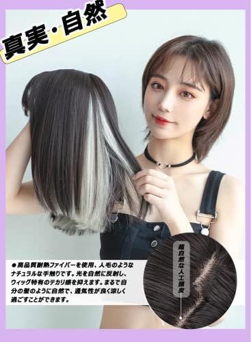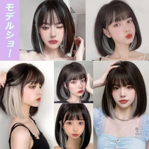 PRETOLE ウィッグショート インナーカラー ボブ 姫髪 レディーズ かつら 小顔効果 自然 原宿系 軽い 耐熱 高温 可愛い おしゃれ ファッション 日常 女装 コスプレ つけ毛 前髪ウィッグ ネット付き(ブラックブラウン&白茶グレー) 1.0 個