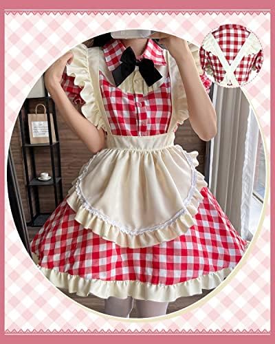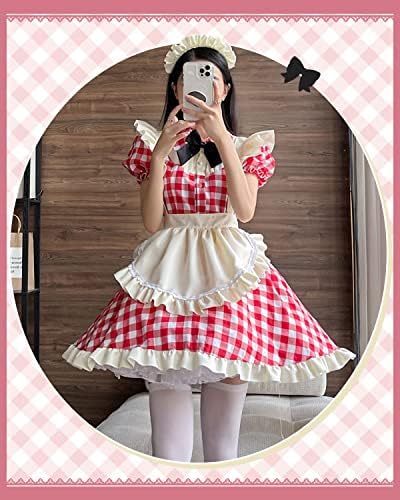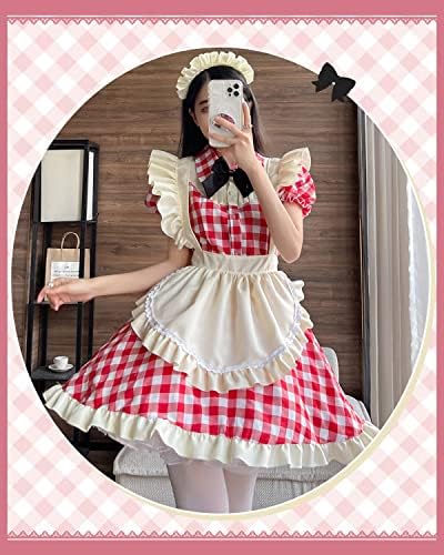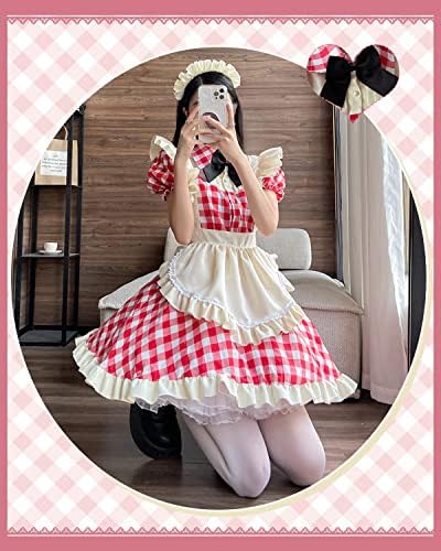 [JIURUN] メイド服 チェック柄 ワンピース ロリータ コスプレ 大きいサイズ 蝶結ぶ ハロウィン 仮装 レディース エプロン カチューシャ レディース コスプレ コスチューム 可愛い メイドカフェー 女装 喫茶店 文化祭 学園祭