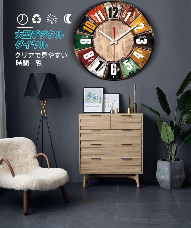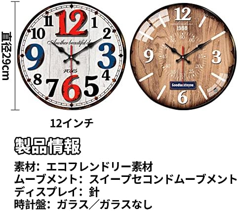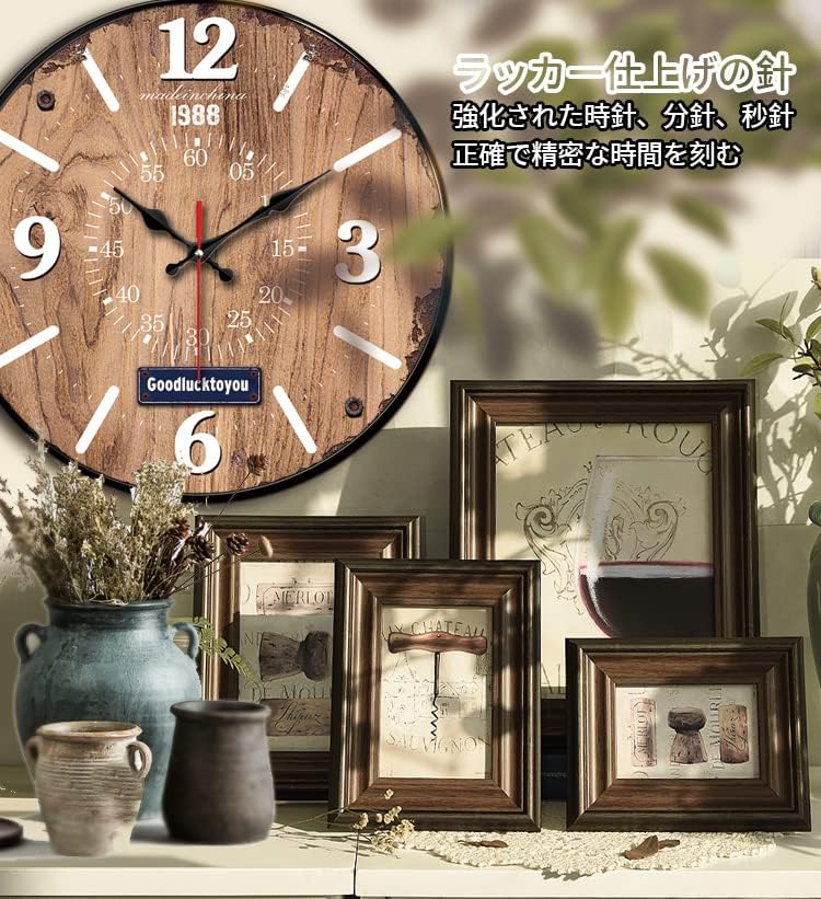 WiViVi掛け時計シンブルで耐久性のある正しいナイムキーピング復古おしゃれインテリア時計壁掛けかけ時計おしゃれモンダン静音連続秒針丸型ウォークロックデジタル見やすいwall clock 12インチリビングroom寝室装飾(ガラスパネル・ヴィティング・プレイド)
