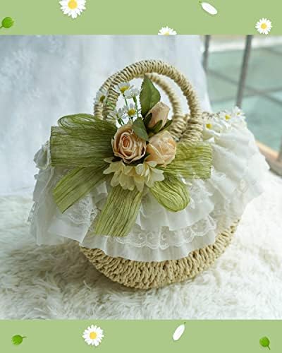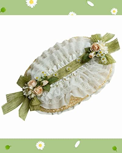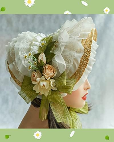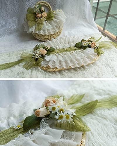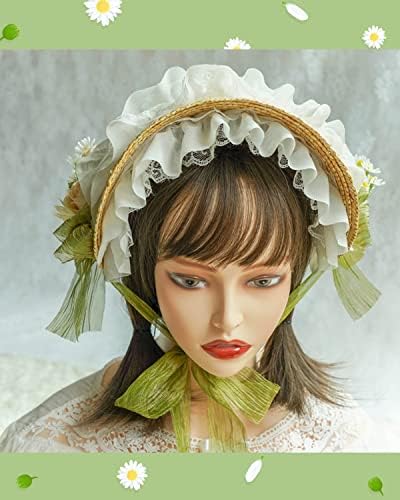 [JIURUN] ロリータ 帽子 ヘッドドレス ストローハット 麦わら帽子 ロリータ風 レース 花付き ヘッドアクセサリー ボネット 田園風 チャーム 髪飾り コスプレ パーティー 茶話会 華麗 撮影用