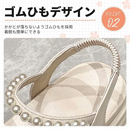【おしゃれ】弊店のサンダルは、上品なデザインに可愛らしい真珠の飾りが施された、トレンド感溢れるサンダルです。真珠の飾りは足元に華やかさを加え、女性らしい雰囲気を演出します。デザインもシンプルでありながら、真珠の飾りがアクセントになっているため、様々なファッションスタイルに合わせやすく、オフィスやカジュアルなシーンにもおすすめです。また、履き心地も良く、足を包み込むような形状で、歩きやすい仕様になっています。夏のファッションアイテムとして、足元から華やかさをアピールする弊店のサンダルは、おしゃれに敏感な女性にぜひおすすめです。 【優良な生地】このサンダルは、滑らかで柔らかい素材を使用して作られています。足にフィットするようにデザインされたアッパーは、滑らかで柔らかい質感があり、履いた瞬間から足に心地よくフィットします。また、履き口や中敷きにも柔らかい素材が使用されているため、長時間の履き心地も抜群です。さらに、足裏をしっかりと支えるソールは、滑りにくく、安定感があります。デザインもシンプルでスタイリッシュなので、様々なコーデに取り入れやすく、大人の女性にぴったりのサンダルです。このサンダルの滑らかで柔らかい履き心地をぜひ一度お試しください。 【ゴムひもデザイン】このファッションサンダルの特徴は、踵部分に弾力性のあるストラップが付いたデザインです。このストラップには、弾力性のある素材が使用されているため、足にぴったりとフィットし、歩行中の足の動きに合わせて自然に伸縮できます。スリッポンみたいに簡単に着脱できるように設計されていますが、このストラップは、歩行中は脱げにくく、踵部分に適度な圧力をかけることで、足の疲れを軽減する効果もあり、快適な履き心地を実現します。 【程よく4cmヒール】このカジュアルサンダルは、足首をスッキリと見せるデザインで、足元から脚を美しく見せることができます。また、ヒールの高さが程よいため、歩行中の安定感があり、足に負担をかけずに歩くことができます。デザインもシンプルでスタイリッシュなので、様々なファッションスタイルに合わせやすく、オン・オフどちらのシーンでも活躍することができます。 【防滑性と耐摩耗性重視】このサンダルのアウトソールは、防滑性と耐久性に優れたゴムを採用しております。鋭い石や凸凹した地面でも滑りにくく、歩行中の安全性を確保します。また、アウトソールは耐久性にも優れており、長期間履いても磨耗しにくいので、コストパフォーマンスにも優れています。防滑性と耐久性に優れたこのサンダルは、夏のアクティブなシーンにぴったりです。ぜひ一足お試しください。 - 4,292位ファッション ( ) - 21位