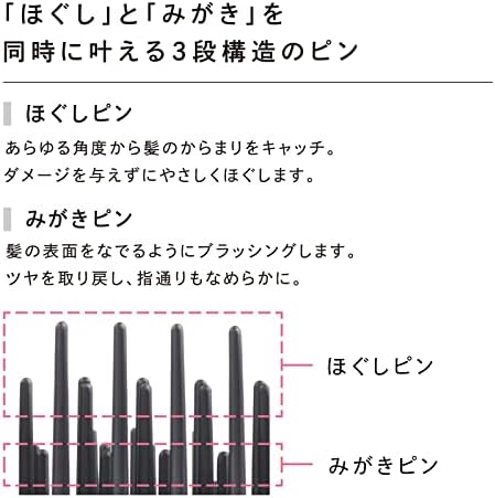 「ほぐし」と「みがき」を 同時に叶える3段構造のピン〈ほぐしピン〉あらゆる角度から髪のからまりをキャッチ。ダメージを与えずにやさしくほぐします。〈みがきピン〉髪の表面をなでるようにブラッシングします。ツヤを取り戻し、指通りもなめらかに。 【髪だけでなく頭皮も】先端をまるく加工したピンが、頭皮を心地よく刺激します。 【大胆にフィット】自然に頭に添わせてストロークするだけで、頭皮から離れず頭頂部から毛先まで隙なくブラッシングできます。 【深く整える】ピンが埋もれがちな、長さやボリュームのある髪も、ロングなピンでこぼさずブラッシング ■こんな方におすすめ 本商品は、女性 , 男性 , 年配 , 老若男女 , 男女 どなたでもご利用いただけます。  20代 , 30代 , 40代 , 50代 , 60代 の幅広い年代のお客様におすすめします。 ■ギフトにおすすめ  家族 , 夫婦 , 子供 , 大人 , 職場 , 会社員 , 学生 , 大学生 , 友人 , 友達 ,女友達のギフトに! ▽慶事やライフイベントで贈り物として  記念日 , 結婚祝い , 結婚記念日 , 引出物 , 結婚 , 銀婚式 , 金婚式 , 還暦祝い , 定年退職祝い , 栄転祝い , 昇進祝い , 新築祝い , 入学祝い, 卒業祝い , 内定祝い , 就職祝い, 退職祝い , 引っ越し , 新生活 , 新居 , 就職 , 退職 , 入学 , 卒業 , 餞別 , 送別 など ▽シーズンイベントで大切な方へのプレゼントに  誕生日 , 誕生日プレゼント , プレゼント , ギフト , クリスマス , クリスマス ギフト , クリスマス , クリスマスプレゼント , バレンタインデー , ホワイトデー , 母の日, 父の日, 敬老の日など - 466位ビューティー ( ) - 3位