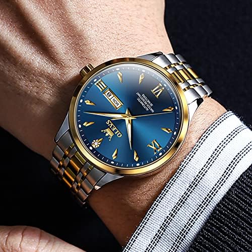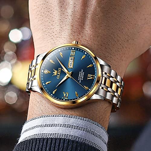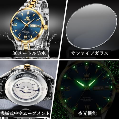 OLEVS 腕時計 メンズ 機械式ムーブメント 自動巻き 手巻き うで時計 防水 夜光 日付け ステンレス プレゼント Watch for manブル