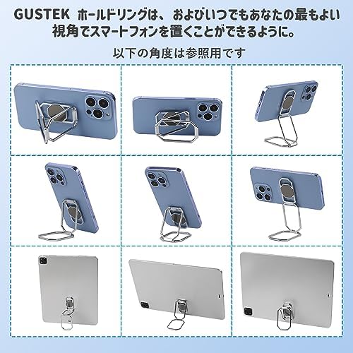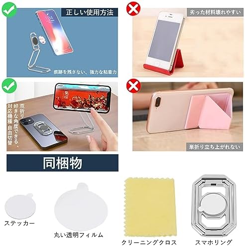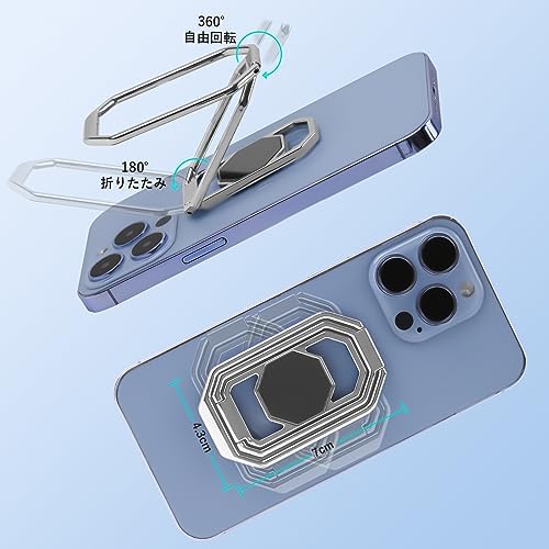 スマホリング 携帯リング リング ホルダー 折りたたみ式 スタンド機能 360°回転 薄型 滑り止め コンパクト耐久性 貼り替え可能 落下防止 粘着テープ式しっかり固定式 バンカーリング 携帯電話 iPhone/Android/switch/kindle/ipadタブレット など各種機器対応(シルバー)