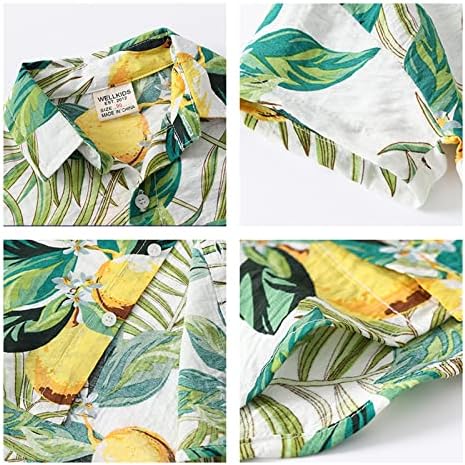 Volunboy Boy's Formal Short Sleeve Set Up Aloha Shirt, Top and Bottom Set, Hawaiian Style, Cute, Animal Pattern, Floral Pattern, Wedding, Party, Travel, Resort, Beachwear